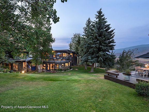 Expansive decks, a fire pit terrace, and outdoor dining areas set against panoramic views complete the lifestyle. Located in the Aspen School District and just minutes to both Aspen and Snowmass, this residence combines timeless mountain charm with modern comfort.
