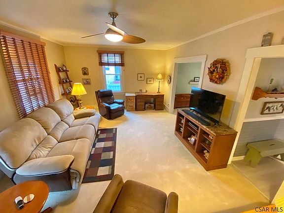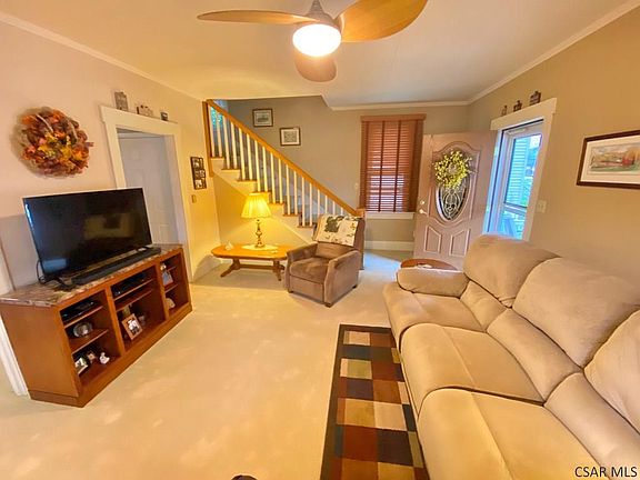 Cute and cozy 2 bedroom, 2 bath home in the heart of Somerset Boro. This home's main floor features living room with w/w carpet and ceiling fan; separate dining room with ceiling fan and w/w carpet; updated kitchen with oak cabinets , laminate floor, and ceiling fan; and half bath. The second floor includes 2 large bedrooms with w/w carpet, ceiling fans, and closets as well as updated full bath. The laundry is in basement and includes laundry tub, washer, and dryer. Partially fenced yard, newer windows and roof, detached one-car garage, covered front porch, and so much more. Make your next move - call today for your personal tour.