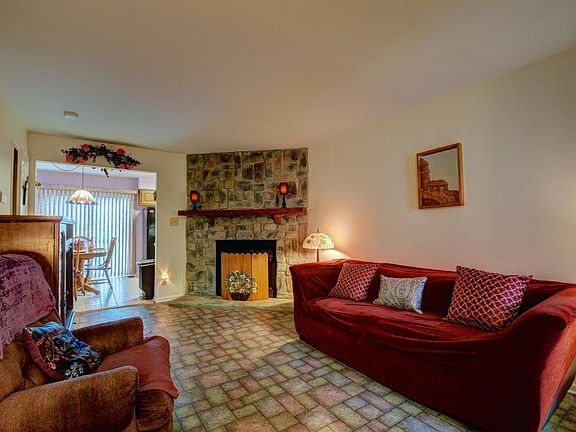 This 2 bedroom, 1 1/2 bath condo/townhouse is located in Sun Ridge. There is an updated powder room and the living room boasts a wood-burning stone fireplace. The kitchen has ceramic tiled floors, self-cleaning gas oven, dishwasher and the refrigerator is included. Newer slider door to an enlarged deck. 2 large bedrooms upstairs (both w/ceiling fans) plus an updated main bath. Finished lower level includes laundry rm (washer and dryer included) and a family room. There are also upgraded windows, newer roof, newer carpeting on staircases and 2nd bedroom plus a 1-car attached garage with opener.