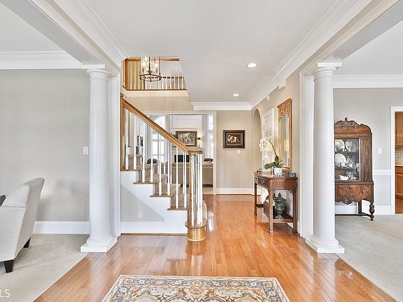 Step up onto the front porch of this beautifully maintained home, turn around & soak in the spectacular view of the community park. Inside you will be welcomed into this warm & inviting home's foyer, large formal dining rm, living rm/office & dramatic family rm w/ fireplace & vaulted ceiling. Kitchen has exotic granite counters, subway tile backsplash, stainles appliances including double oven & gas cooktop, hardwood flrs & loads of storage. Large laundry rm w/ sink. Master on main features trey ceiling, en suite, tiled bath w/ whirlpool tub & separate tiled shower, walk-in closet. Upstairs are 3 generous sized bedrooms, one w/ own bath & other 2 share Jack & Jill. Terrace has family rm, rec rm, possible bedrm, media rm. Beautifully landscaped yard, firepit 2018-04-11