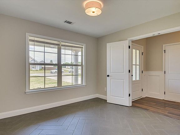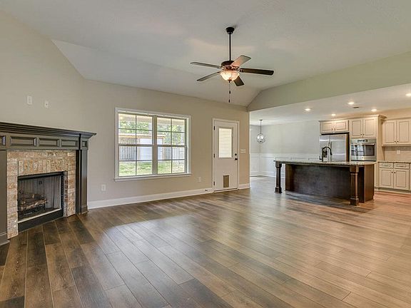 If you're lucky enough to live in Sweetwater Landing, you're lucky enough! This fabulous home is located in the heart of the neighborhood and welcomes guests with a wonderful rocking chair front porch. A passthrough foyer accented with judges paneling is flanked by a sunny flex room with herringbone tile that can be used as a formal dining room or home office. A huge open floor plan is designed for today's living and features a gas log fireplace, breakfast room and a deluxe kitchen offering a large snack bar island, ss appliances, pantry and ample custom cabinets and granite countertops. A spacious owner's suite boasts a striking coffered ceiling, huge walk-in closet and en suite bath with double vanities, marble countertops and separate shower. Three additional nice-sized bedrooms are served by a well-appointed bath. Additional features: NEW paint & carpet throughout, LVP flooring, recessed lighting, storage galore, walk-in laundry room, 2-car garage, free exterior, fully landscaped, sprinkler system, privacy fenced yard, pole barn with roll down door, covered back porch and greenhouse. Qualifies for 100% USDA financing with no city taxes!