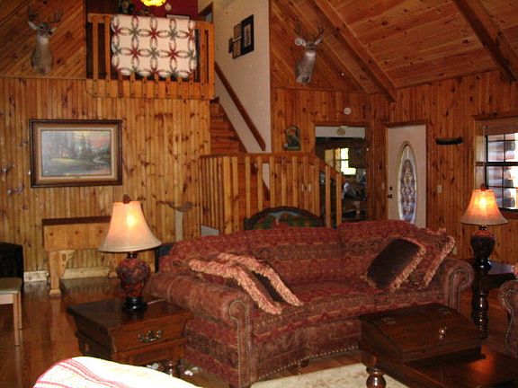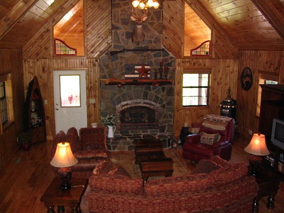 CUSTOM LOG CABIN WITH BREATHTAKING MOUNTAIN VIEWS ON OVER 7 ACRES. This 3BR/2BA home has tons of extras. Kitchen has granite countertops and open to the dining area. The huge Great Room feels like you are in a mountain lodge with massive fireplace,custom hemlock mantel and red oak floors. Large master suite with private deck. Enjoy mountain views and cool evenings by the outside fireplace in the screened-in porch. Detached oversized 2 car garage with office. Outdoor pavilion with BBQ/smoker built in seating and fire-pit area. The property is private and plenty of room for gardens.Home has a 8x8x20 Storm Shelter...TONS OF EXTRA TOUCHES THAT YOU JUST CANNOT LIST THEM ALL!!!..A MUST SEE HOME