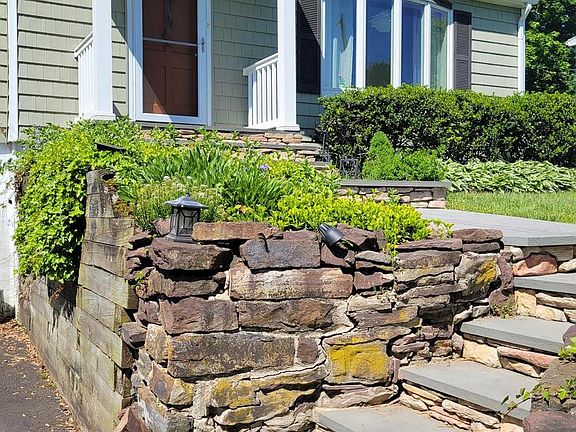 This Remodeled Cape Cod home set back and high off Taylorsville Rd within walking distance to charming Yardley Borough. Custom concrete walkway to covered front portico. Vinyl cedar shake look siding in front with Dutch lap siding style on balance of exterior. Multi car driveway, replaced dimensional roof , upgraded windows and doors. Fenced-in yard, rear porch leading to custom stamped concrete patio and large garden shed. Interior of the home offers a living room with wood burning fireplace and hardwood flooring. Kitchen has new laminate flooring, recently installed Bosch dishwasher, double wall oven, Samsung triple door stainless steel refrigerator. Formal dining room with two corner built ins and hardwood floors. Two first floor bedrooms each room has hardwood flooring and ceiling fans. Second floor has two bedrooms, the primary bedroom with built in wall dressers and separate closet. The hall bath has a new vanity and full tub. Second bedroom has individual control for heat. House has central air conditioning on first floor and wall units on second floor. Full basement with a good sized game room nd outside entrance on ground level. Newer electric water heater.