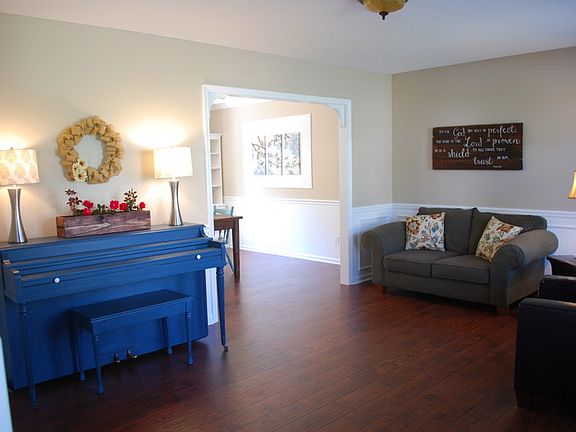 This well-maintained home will give you years of enjoyment. The exterior has a landscaped front yard and fenced in back yard with woods behind adding much privacy. The back yard also has a large deck perfect for grilling and entertaining guests. The inside of the home has beautiful laminate wood flooring throughout the entire bottom floor. There is wainscoting and chair rail in the family room & dining room with crown molding as well in the dining room. The family room has a wall-size built-in bookcase/cabinets that are perfect for storage and decorating. Kitchen includes an electric double oven, super quiet, efficient Electrolux dish washer and French door fridge with large drawer freezer unit. The downstairs has a side by side laundry closet with storage shelves, powder room and spacious kitchen in addition to the living room, dining room and family room. The upstairs has a large master bedroom with vaulted ceiling and fan with walk-in closet and master bathroom with shower, garden tub and double sink. There are two large bedrooms, one with a double closet. The fourth bedroom can also be used as a laundry room as it has the plumbing and electrical hookups already installed. The 2 car garage has two large, wall-anchored, wood-built shelves added on for storage and there is an extra space in one corner that is ideal for a work area. This home has been well taken care of. It has new, neutral paint throughout, new wood laminate flooring downstairs and a wonderful, private back yard. You will be located just minutes from schools and shopping off Platt Springs Rd, and ten minutes from I-20 and the town of Lexington. Come and see!