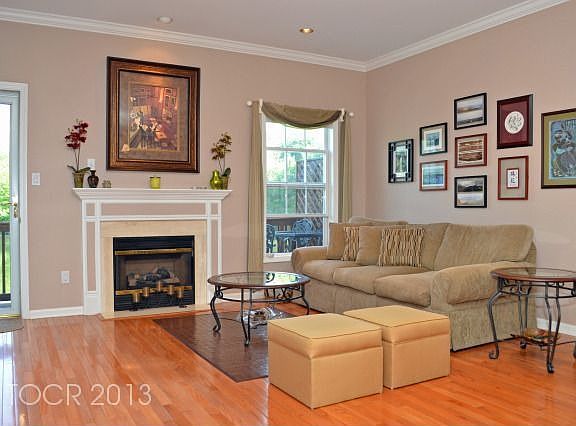 Beautiful LAKEFRONT townhouse -largest in gated community. Breakfast room, kit, LR and DR all have hdwd floors, crown moldings, s/s appls and lots more. There are 2 gas fireplaces and a full finished walk out rec room with a patio as well as an upstairs deck off the LR. Tons of extras incl humidifier on furnace, jetted tub, heat lamps in both baths, Hunter Douglas shades and blinds, central vac, surround sound and a new paint job