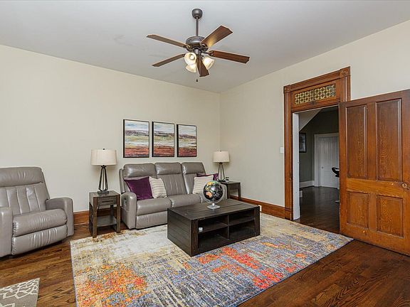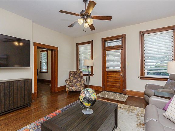 Want to live by all of the fun on Main Street? This historic St. Charles house has modern updates mixed with historic brick and wood accents to create a charming home, with a block walk to historic Main St. The main floor includes newer hardwood floors, as well as an updated kitchen and full bath. Kitchen updates include white cabinets, quartz counter tops, center island, white subway backsplash, farm house sink, gas range with double oven, and other stainless appliances.Refrigerator stays!Main level boasts 10 foot ceilings and very cool trim work. The living room has a large mounted TV that stays with home.There is a small office off of living room and main floor laundry right next to master bedroom-washer/dryer stay as well!Upper level includes a large loft bedroom area, as well as a smaller bedroom that is really more of an office or nursery space.The full bath on this level is a newer addition also so is completely updated! Electric mini-split as well.Backyard tree is 200-300 yo!