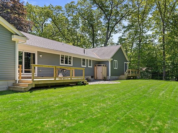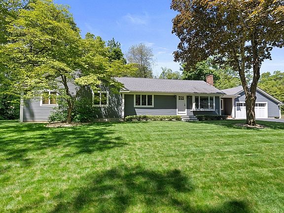 Welcome Home; your search ends now! Located in a "hidden gem" neighborhood, tastefully updated, sprawling Ranch style home offers a flexible floor plan & one level living. Hardi board siding & AZEK trim. Updated eat-in kitchen features white cabinets, granite countertops, stainless steel appliances, range w/ 2 ovens, hardwood floors and vaulted ceiling opens to Living Room w/ stone fireplace with pellet stove insert, vaulted ceiling: a warm and inviting space. Main Bedrm w/ hardwoods, large closet & updated private bath w/ tile shower. 2 additional bedrooms are very spacious. 2nd Bath has a pedestal sink & tub/shower combination. Step-down Family Rm/Rec Room features 2nd fireplace, beamed cathedral ceiling, skylights & hardwoods; perfect space to entertain friends & family. Barn doors lead to den w/ double sliders to new deck. Mudrm w/ sliders leads to 2nd new deck & 2 Car Garage. Private yard & outdoor shower. Newer roof. Conveniently located to town center, schools & train. Must see!
