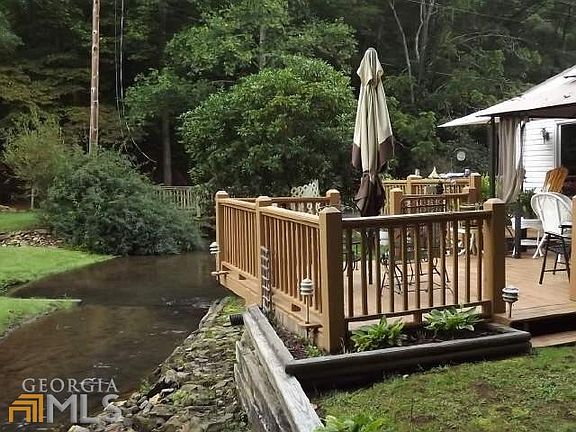 Ford Wolf Creek (Native Trout Stream) to an Incredible Park-Like Setting with over 1000' of Creek Frontage. Borders Nearly 90,000 ac. U.S.F.S. and walking distance to Vogel State Park. Great site for possible Camp Ground. Well maintained 2/2 Home with many upgrades virtually hanging over the creek complete with Generator. Property also features a Guest Cottage, Creekside Workshop, 2 Covered Campsite, Green House and 2 Car Carport. Wide Bridge leads to open land perfect for Gardening. Nicely Landscaped and most Unique Property, one you have just got to see.