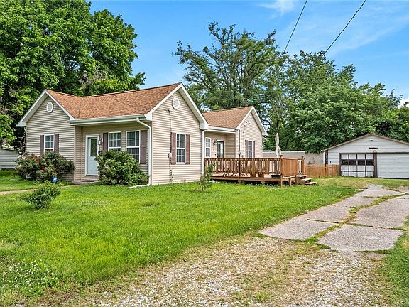 What a find! So much storage outside and also updated inside! This three bedroom ranch has all the conveniences of main floor living. Inside you'll find a bright and airy living room with laminate wood flooring that leads into the updated kitchen with plenty of counter and cabinet space and all appliances to stay. The three large bedrooms share a full guest bath. There's a large laundry room that also is used as an office. Enjoy the view of the fenced yard from the deck. Lots of parking along with a detached two car garage. There is also a storage container at the back of the property that would be ideal for storage or a workshop. Buyer to verify all information.