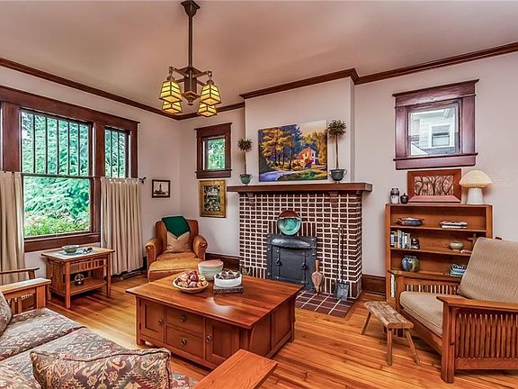 c. 1922 Beautifully restored Craftsman bungalow in Historic Washington Park. 10ft ceilings, authentic period lighting, and wood floors throughout. Wonderfully preserved original details, including two fireplaces, windows, millwork, butler's pantry and built-in linen wardrobe - the woodwork never painted. Kitchen features custom cabinetry, quartz counters, under cabinet lighting, dual fuel Kitchenaid range and substantial pantry. Nicely landscaped exterior with private large stone patio.
