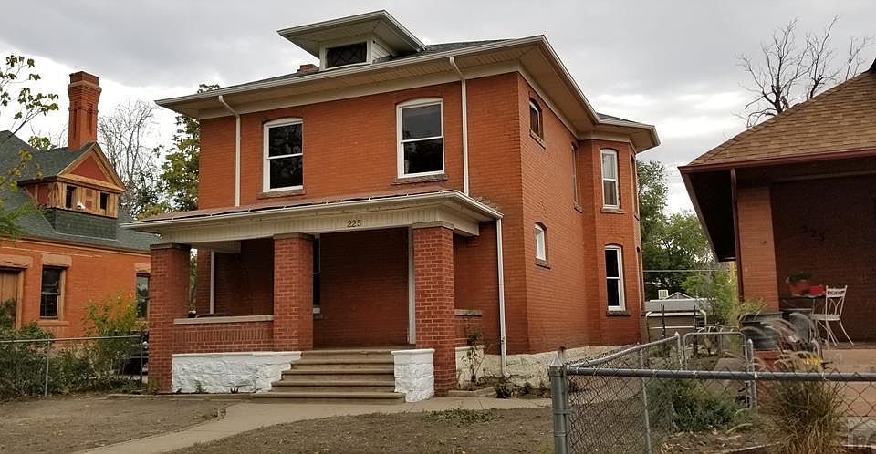 Price cut! Historic Home. American Four Square. Let the dreams continue in this lovely historical home! Beautiful original woodwork that is NOT painted. Original door hinges and knobs and neat front doorbell. Originally built for executives with quality! Home has newer hi-efficiency boiler and water heater, electric service, roof mounted the evaporative cooler, hi-end gas range, and hood, dishwasher, and refrigerator included, newer roof, kitchen flooring. 4 car carriage house off the alley offers privacy to the big yard too! The main floor bedroom has unique beautiful fold away doors to accommodate for special dinners or close off for the use as a bedroom. Large bright basement has a side door which comes into the butler's pantry area. Master bath has an extra long claw-footed tub with shower. Notice the light with the hidden fan. Exceptional closet space for a home of this era! Beautiful quality light fixtures with dimmer switches to enjoy the ambiance of the high ceilings with picture rails. The gorgeous original gas fireplace is not in use. Notice the concrete gutters lining the sidewalks to keep the ladies long skirts clear as they head up to the welcoming front porch. (drains water away as well). Agent owned. Copies of permits are downloaded to documents. Call for the interesting history. More usable space than a typical Victorian home has but loaded w/ character.