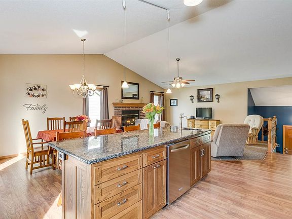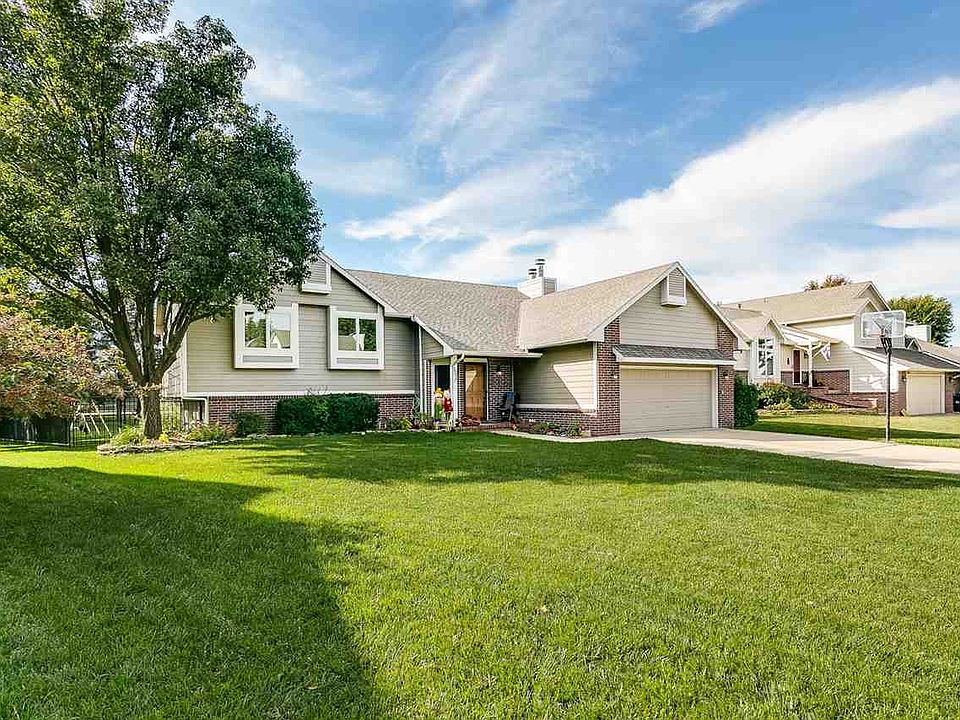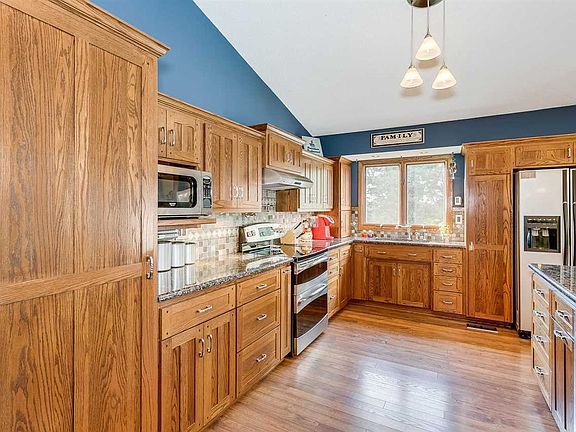 This is hard to find and worth a look. 5 bedroom 3 bath, upgrades through the home. Granite counter tops everywhere. Kitchen has an island that measures 41"x104" with a bar sink and easily sits 4. The Kitchen cabinets are custom build by upscale "Becker Cabinets" in Hesston, KS. They are plywood structure with solid oak faces and frames. Pantry and some base cabinets have the roll-out feature. The Range is a comb Oven/Convection with a pot filler above. The lighting is also upscale all the way to the switched on the walls. Tiled back splash is nicely done and there is under the counter lighting in the kitchen. Other features are: private well, sprinkler system, Gas grill hard piped to natural gas, air compressor in garage and air piping stay with the house, RV elec plug, and wrought iron fence.