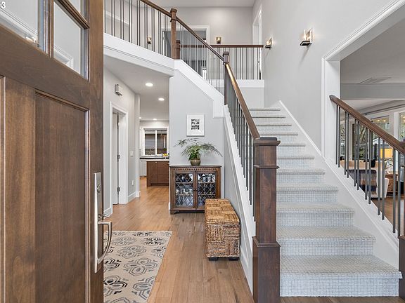 This is a gem with impeccable architectural design updates from top to bottom! New roof w solar pv, ext & int paint. Open concept living, kit ss applcs, quartz island, updated cabs & large pantry/wine cellar. New lighting & flooring throughout. Primary suite with fs tub, walk-in shower, dbl vanity, quartz counter tp, large bonus room with wd flr, generous add'l 3 bed plus office, central vac, landscaped, irrigation, garden, w large covered patio and pond! WOW! One Owner licensed agent in Oregon.