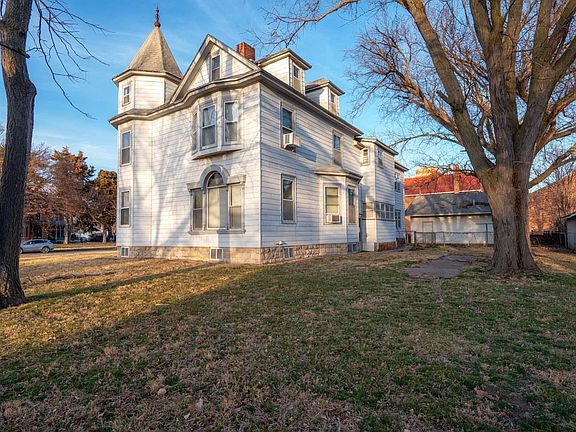 Dramatic, Turn-of-the-Century Queen Anne Victorian Treasure, totally over 3600 sqft of finished living space, located 1 block from elementary school and minutes from parks and walking trail. Stunning curb appeal with covered front porch and eye catching turret. This architectural masterpiece includes everything you would hope to find in a home from the Elegance Period...huge windows, pocket doors, transom windows, beautiful fireplace w/ inset mirror, carved woodwork, ornate moldings & millwork, sitting room, formal dining, grand staircase, and landmark historical appeal. Currently set up as main floor owner's quarters, two 1-bedroom apartments on 2nd floor, and 3rd floor ready for your creative touch. Partial basement provides extra storage and ready-to-finish space. Choose a home with history....call for your showing today.