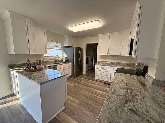 Fully remodeled brick ranch in a quiet, established neighborhood. This home has been completely updated, featuring a fully renovated kitchen with granite countertops and brand-new appliances, new flooring, new windows, new gutters, and a one-year-old roof. The newly added primary suite includes his-and-hers closets and a stunning master bathroom with dual sinks. Enjoy the large refinished deck, spacious barn, and fenced-in backyard—perfect for outdoor living. This ranch is truly a must-see.