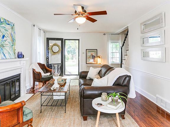 Seeing is believing! There is an abundance of living space in this 2,350 sq ft Cape Cod featuring a first floor master bedroom and master bath. Lots of natural light throughout with an open concept floor plan, beautiful hardwood floors, living room features brick wood burning fireplace, floor to ceiling windows overlooking manicured backyard, dining room with pantry area and french doors to side patio. Tastefully updated kitchen with ceramic tile floor, stainless steel appliances, tile backsplash and kitchen island. Sunroom with ceramic tile to enjoy a book or morning coffee. First floor master bedroom with recently updated master bath. Dual staircase leading to the second floor, which would be possible for extended living quarters. More natural light in the spacious bonus room with an open office/desk area, additional two bedrooms, two recently updated full baths and updated Laundry room. Hardwood was recently refinished on second floor. Enjoy the summer and fall nights by the fire pit area, private fenced in backyard with shed, attractive landscaping and additional outdoor limestone patio space. 1 car detached garage, and full basement, 1 year AHS Home Warranty. You'll want to make this home yours! Seller may consider selling home with some furnishings.