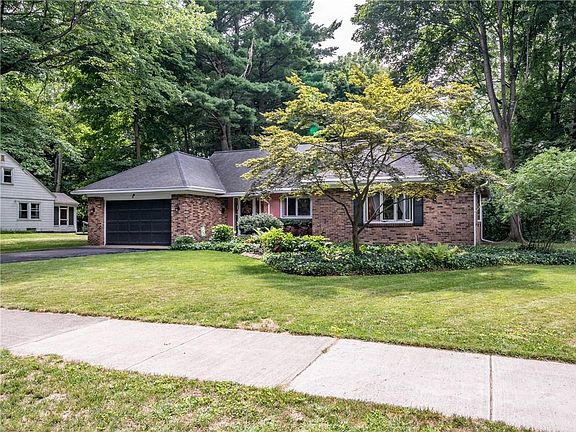 This Irondequoit Cape style home w/ a beautiful perennial garden welcomes new owners. The many updates include new vinyl flooring in the foyer leading to plush carpet through the living room, hall & master bedroom. The living room offers a centered wood FP & convenient 2nd dining area or social space w/ natural light & access to the yard. Owners updated the electrical service, added insulation, new boiler 15', & leaf guard gutter system 20'. The updated bath w/ tiled shower & granite vanity is wonderful. An expansive kitchen has vast storage, hrdwd flrs, tiled backsplash, office/work area, & adjacent 1st flr laundry. Enjoy floor to ceiling windows in the eat in kitchen, a slider leading to park like back yard, cathedral ceiling, skylights & gorgeous view of the landscaped brick patio. A larger master has shiplap style accent wall & extra space for all your furniture. The 2nd level 4th bedroom/in-home office/play or guest rm has added storage throughout. New owners will enjoy all the appliances, relax in the hot tub, or entertain in the large yard. Convenience to expressways, Lake and shopping. Delayed showings 8-21 9am, Offers presented 8/24 6pm. Ask your agent for 3D tour.