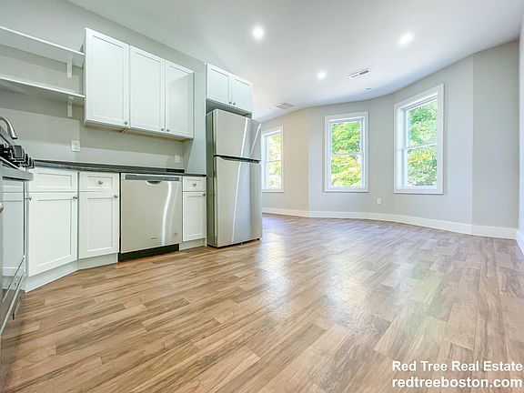 This top-floor unit was recently renovated in 2022. It has an open-concept living room and kitchen. Brand new stainless steel appliances. A large balcony in the back with shared access between the 2 bedrooms. Located right next to Franklin Park. It's a 20-minute walk to Field Corner and 3 minutes to Four Corners/Geneva. Video tour available! 50% BROKERS FEE PAID BY LANDLORD