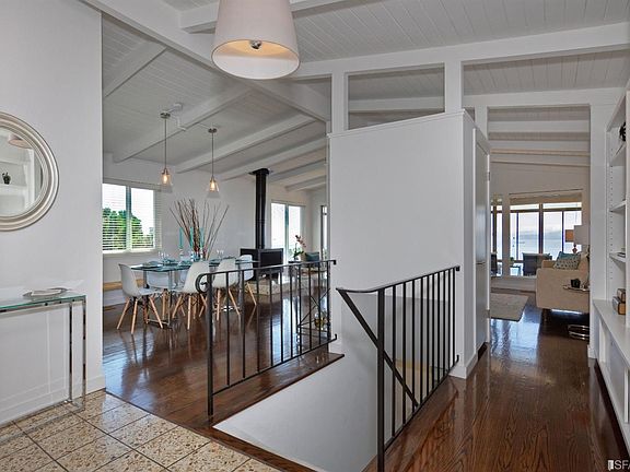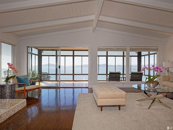 Unparalleled views of the Bay, SF & 3 bridges, from this exceptional home perfectly perched up on Point Richmond's Water St, renowned for its spectacular one-of-a-kind views. 2 bedrooms+2.5 bathrooms+bonus room that can be used as office/den/studio. Open-concept/vaulted-ceilings/floor to ceiling widows+hardwood floors, create an unique opportunity to entertain & enjoy. Chef's kitchen w/granite counters/custom cabinetry/farm sink make this any cook's delight. Luxurious master-suite extends to picturesque deck. Sunroom to watch ships passing in any weather conditions. Outdoor living at its finest on the deck, gaze at the stars/the city lights/soak in the sunsets+watch the sail boats dance around the bay. Ferry is scheduled to start in October