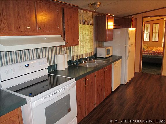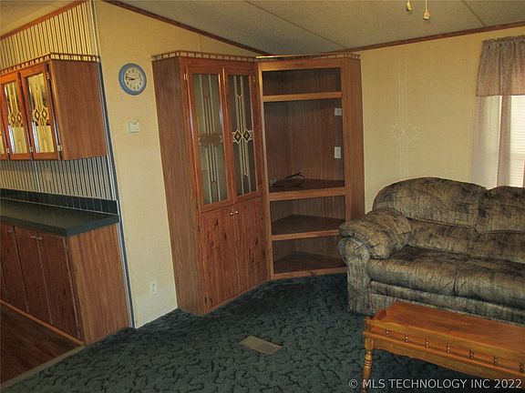This older manufactured home is in very good condition and located in Bennington. Living room has a built in corner for a television, curio cabinet, ceiling fans, kitchen hutch, pantry, dining area, large master bedroom with two closets, master bath has a large garden tub and double vanities. The exterior has a huge covered front porch with a ramp, 2 car carport, two storage buildings, and pipe fencing. Bring your animals and enjoy living in the country.