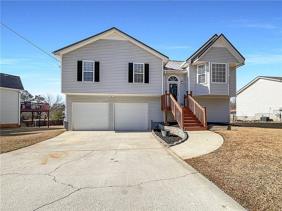 Discover this gorgeous 3-bedroom, 2-bath split-foyer home, perfectly blending modern style and comfort. Situated on a level lot with no HOA, this property offers everything you need for relaxed living and effortless entertaining. Main Living Areas: Great Room: Gather around the cozy fireplace in the great room, the perfect spot to relax and unwind with family and friends. Kitchen: The bright, white kitchen features sleek black appliances, combining classic and contemporary design elements for a truly timeless look. Dining Room: Enjoy meals in the separate dining room, ideal for hosting dinner parties or family gatherings. Bedrooms and Bathrooms: Master Suite: The renovated master bathroom is a true retreat, complete with a separate shower and a luxurious stand-alone soaking tub. Two additional bedrooms provide ample space for family, guests, or a home office. Additional Features: Finished Basement: A versatile finished basement offers endless possibilities, from a recreation room to a home gym or office. Oversized Garage: The deep, oversized 2-car garage provides plenty of space for vehicles and storage. Outdoor Living: Step out onto the deck and enjoy the fenced backyard, perfect for pets, play, or outdoor entertaining. This stunning home offers a rare combination of thoughtful updates, modern conveniences, and a prime location. Don’t wait—schedule your showing today and make this dream home yours!