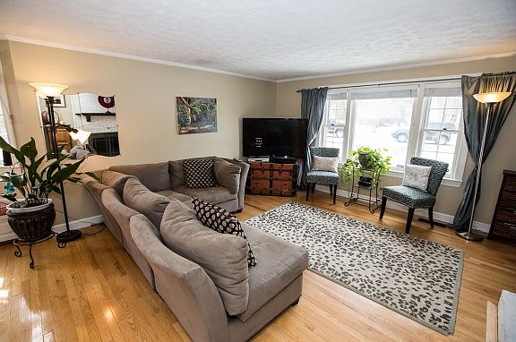 Beautifully maintained detached cape style condo with 3 season porch overlooking woods. Fireplace, recent kitchen and finished playroom in basement & possible guest room.