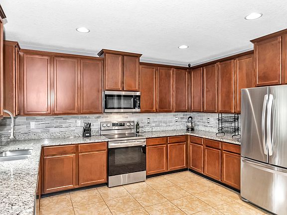 This home is ready for a new family to enjoy! With over 2500 sq ft of living space, offering 5 bedrooms, 3 full bathrooms, a large fenced yard, family room, living room, dining area, screened back patio and beautifully updated kitchen with granite counter tops, subway tile back splash, and stainless steel appliances. There is a large walk in pantry, a spacious laundry room, and additional storage closet. The primary bedroom is large with trayed ceilings and a huge ensuite and walk in closet. Brentwood Lakes is gated with 2 community pools, winding sidewalks, a playground and cable and internet are included in the HOA. The sellers will have the roof replaced prior to closing. This home is clean and move in ready!