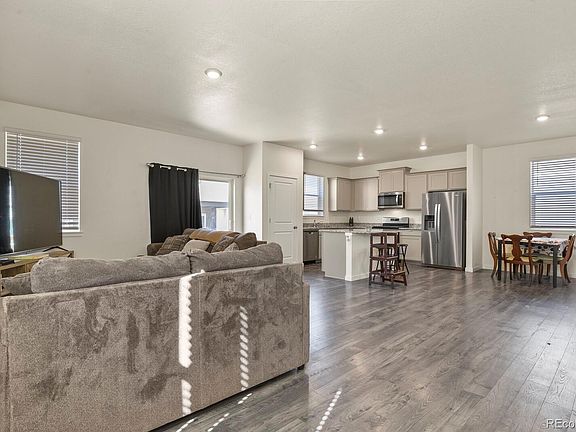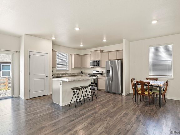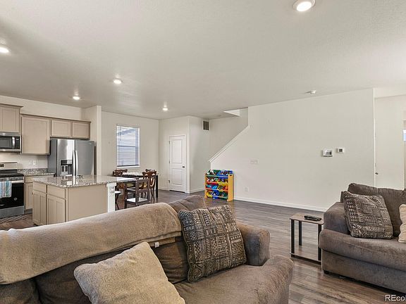Discover this nearly new 4-bedroom, 2.5-bath smart home in the tranquil community of Sky View, Bennett. Thoughtfully designed with solar-owned panels, enjoy the luxury of energy bills as low as $25 per month. The expansive open floorplan seamlessly connects living spaces, ideal for modern family living. A large fenced yard offers privacy and space for outdoor gatherings, while the 2.5-car attached garage provides ample storage and convenience. Sky View captures the charm of small-town living with tree-lined streets, a welcoming community park, and a peaceful atmosphere. Situated just 15 minutes east of E-470, this family-friendly neighborhood provides easy access to schools, shopping, and recreation, making it the perfect retreat for those seeking both comfort and convenience.