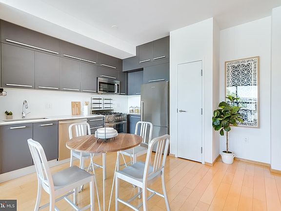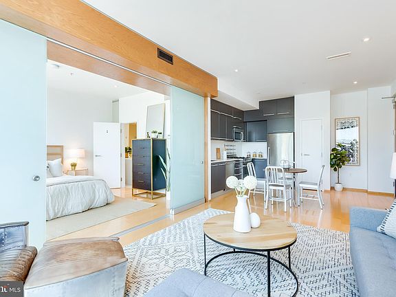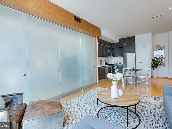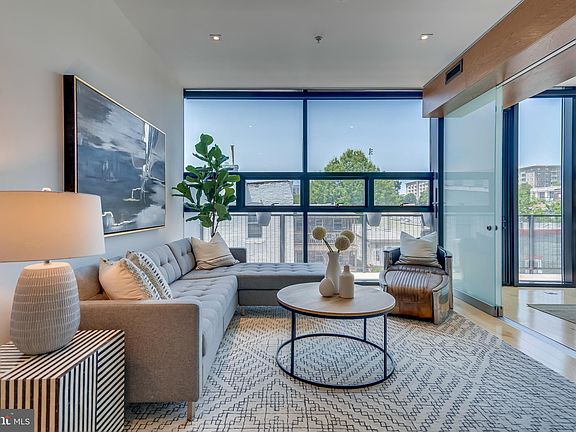 Contemporary Condo in Logan Circle ; 1 Bed ; 1 Bath ; 675 Sf ; Private Balcony ; 1 Parking Space ; Building: 2 Community Terraces, Secured Entry, 1 Elevator, 26 Units, Built in 2009 ; Units: Floor-to-Ceiling Windows Throughout, Sliding Frosted Glass Doors, Plenty of Storage Throughout, Recessed LED Lighting, Western Exposures, En-Suite Bathroom, Hardwood Flooring, Open Floor Plan, Walk-In Closet, Washer & Dryer ; Kitchens: Scavolini Cabinets, Bertazzoni Professional Gas Stove, Fischer Paykel Refrigerator, Bosch Microwave, Miele Dishwasher, Corian Countertops & Backsplash ; Baths: Vanity by Scavolini w/ Storage, Frameless Glass Shower Stall w/ Waterfall Showerhead, Porcelanosa Oversized Tiling, Hans Grohe Fixtures, Toto Toilet