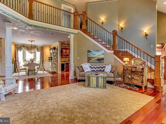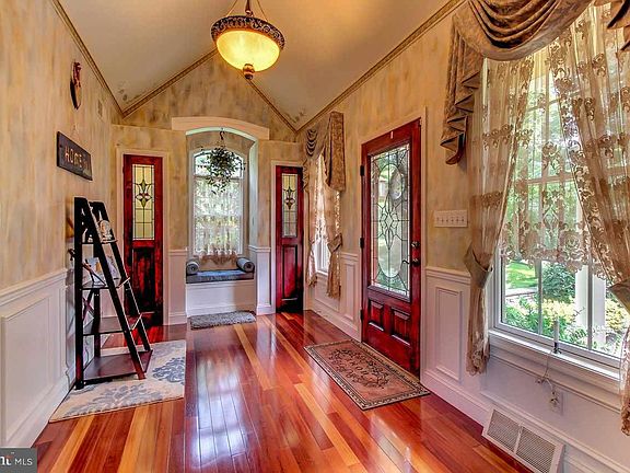 Uniquely remarkable home with fine detailed hand painting throughout by a local artist Pure elegance in this 5,600 finished square feet custom Contemporary home with Brazilian cherry flooring throughout. Gourmet kitchen with all the features you would expect in a home of this distinction. First floor Master Suite with his/her walk-in closets and adjoining den showcasing amazing detailed hand painted artwork and private patio with fountain and colorful koi fish. A master bath that will amaze you with it's luxurious features including a soaking tub, walk-in custom tiled shower, separate water closet, cherry cabinetry and a walk-in closet Two-story family room with lighted stained glass feature above the fireplace. Two-story living room with a gas fireplace, stained glass windows and gorgeous views of the gardens and falls. Second floor provides 3 spacious bedrooms and a full bath. Four season room with gas fireplace with beautiful views, walk-in level to the basement. Recreation room with gas fireplace and built-ins. Pool table room with lighted stained glass panels. Gym off the garage with mirrors. Lush professionally landscaped grounds with formal gardens, gazebo, fountains & water falls Over-sized 3 car garage with chair rail and wainscoting.