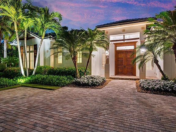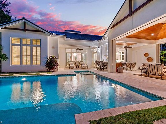 In the heart of the Moorings sits a picture-perfect single story home on a .36 acre southeast private corner lot. Prepare to be in awe with the attention to detail! Filled with natural light, the open floor 3933 under a/c, 5,473 total square foot plan is an ideal and manageable living space with a great flow. An innovative design with a one-of-a kind dramatic cupola featuring 4 bedrooms, 4 full baths, 2 half baths, a study, 3 car garage, gas heated pool and spa, an intimate outdoor living space and a lushly landscaped private side yard perfect for pets. Exceptional craftsmanship is found throughout the home with extensive custom millwork and moldings and beautifully stained and painted cypress tongue & groove vaulted ceilings. Fireplaces, a summer kitchen with a Viking grill, and remote-controlled screening and shutters make the outdoor space cozy and perfect for entertaining. The spectacular oversized gourmet kitchen offers Wolf, Bosch and Sub-Zero appliances as well as custom maplewood cabinetry, exotic quartz countertops, an expansive working island and butler’s prep area with full pantry. Extremely striking are the handcrafted European white oak hardwood floors, magnificent lighting fixtures, chandeliers and wall sconces, and the carefully selected stones and natural materials – marble, onyx, quartz, granite, and shell stone – adding warmth to the spaces. A professionally interior designed home, extraordinarily beautiful, and offered turnkey with luxurious custom furniture, original commissioned artwork, sculptures, fitness equipment, fine china, exquisite accessories, and home audio/visual throughout. Other special and mechanical features include two 2022 Lennox HVAC's with an 8 duct-zoning system and digital thermostats in every room; two tankless water heaters; 2022 gas pool heater & pump; 500 gallon propane tank; and a professional landscape design! Every detail of the home is simply perfect and only requires a discriminating buyer with a suitcase. No weather-related insurance claims, and no water damage. Location, location, location! Within one-half mile to Moorings Private Beach, an exclusive amenity privileged to this residence, and a short distance to world-class fine dining and boutique shopping on 5th Avenue, Third Street and Venetian Village. Hospitals, parks, challenging golf courses and marinas all nearby. Come fall in love with paradise!