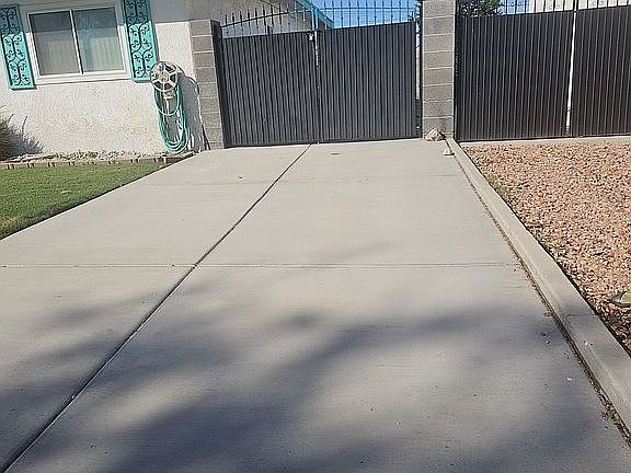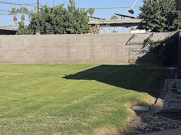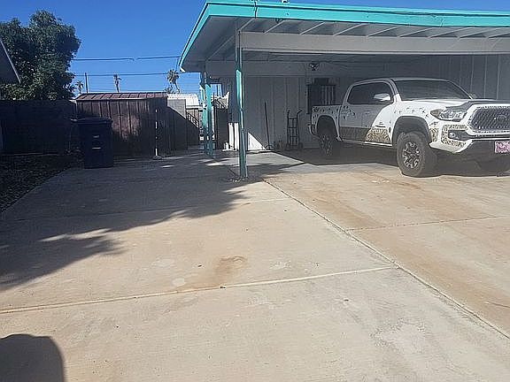 3 bedroom, 1 & 3/4 walkin bath, living room big front window, dining room, extended den with built in wall of storage cabinets, 4ft to 9ft pool, shade over pool, storage shed, pool pump storage area, large back yard with grass, 2 car port coverage, 1 extended parking area on both sides of front yard, gates with locks to back yard and side yard. Grass front yard. Very Nice, needs a family to live in it.