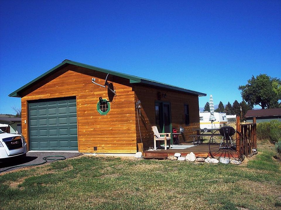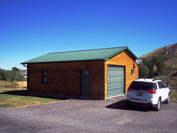 This could be the perfect set-up for snowbirds or sportspersons that enjoy recreating in the Meeteetse area! Nicely finished compact living area with slate shower, hickory cabinets and a deck to enjoy the open views off the back of the home. RV hookup. Small creek crosses the property consisting 4 lots for a total of .64 acre. Furnishings, lawn equipment, etc can be purchased for an additional $4000. Seller has winterized home and used only in the summers.