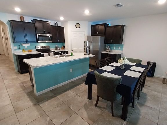 This is the home you've been looking for! Beautiful split floor plan boasting 4 bedrooms and 2 full bathrooms and 2 car garage. Built in 2021 with modern, efficient A/C, quiet, double pane windows with blinds on EVERY window. Indoor laundry room and indoor utility HVAC utility room. No expense spared on the luxurious 15.5' x 30' saltwater pool with all premium Jandy pool equipment, including an efficient electric pool heater. The pool and patio area features an extended 9' x 11' elite roof and high quality bronze aluminum screen enclosure protecting the entire area. Dimmer switches in most of the rooms and ceiling fans with light kits throughout. The kitchen features wood cabinets with elegant stainless steel pulls, crown molding, and a large walk-in pantry. Dual sink master bath, smooth as silk sliding shower door for easy entry and exit, and a separate toilet room. In the garage, you'll find a fully insulated, hurricane rated garage door, access to plenty of -Continue reading attic storage space with sturdy 3/4" plywood subfloor already installed. Complete hurricane shutter kit, extra shutter mounting hardware, and laminated instructions for quick installation. Outside you'll notice perfectly installed gutters all the way around the house and a beautiful 6 foot white vinyl fence with 4 gates; left front, right front (double gate), and rear. The double gate has an easily removable center post for parking an RV or boat. Additional white vinyl fence section protecting the pool equipment. In the backyard, you find a bonus gate to on-property yet out of view storage, and a very useful 5.5' x 6.0' storage shed. The power line is buried at this address for extra peace of mind. Just think...isn't it time to step into your own little space in paradise???