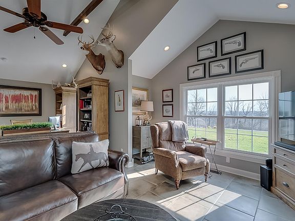 Spectacular 360 degree views from this horse, hunting and hobby income producing farm located just minutes from Wilmore and Bluegrass Sportsman Club. Freshly remodeled with recent new addition planned by James Croley, this well appointed home boasts fabulous large covered patio with gas stove, bar, and fireplace. Unfinished basement portion could easily support a kitchen for a downstairs mother-in-law suite. Barn and 4-board fence encompass several paddocks for horses. Deer and turkey abound in the wooded area and back field, a 14-point buck was recently harvested here. Like to RV? The huge shop has tall bays for storage. The property has a radio tower currently generating $726/month with but expected to be $798/month for the next 5 years with the new contract, that's approximately $50,000 over the next 5 years! Be sure to see the incredible drone video in the attached Virtual Media.