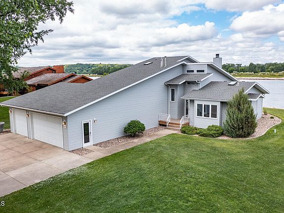 This stunning waterfront sanctuary is nestled on the serene banks of the Missouri River. This inviting 3-bedroom home boasts a picturesque setting with a convenient location. The highlight of the property is the expansive deck offering breathtaking views of the river. Inside, the updated primary retreat provides a luxurious escape. A standout feature is the large 4+ stall garage, ideal for car enthusiasts or ample storage. Experience the perfect blend of comfort and tranquility in this riverside gem, located on 1.3+ acre rip-rapped lot with a concrete fire-pit location along the shoreline. All while benefiting from the rural tax rates of the county, with the amazing amenities of the city just feet away! There are TWO DOCK locations/pads OPTIONS for a future dock.