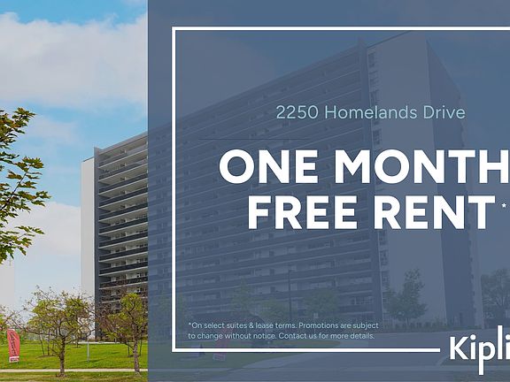 AboutReceive 1 Month Free Rent!*Located in the heart of Mississauga, Sheridan Homelands is a 15 minute walk or 5 minute drive from the Sheridan Centre. With transit right at your doorstep, it makes getting anywhere in the city easy and accessible. This building includes an outdoor swimming pool, elevators, laundry facility, indoor / outdoor parking and is pet friendly! Enjoy newly renovated suites, which include contemporary finishes, new windows, new kitchen with modern cabinetry, counters and chrome hardware, stainless steel appliances, and re-finished parquet flooring.Residents enjoy a variety of amenities:24-hour video surveillanceProfessional on-site managementOur prime location ensures you're close to essential services and leisure activities. Thornlodge Park is a 9-minute walk away, Sheridan Centre is just a 4-minute drive, and Costco is a 7-minute*On select suites & lease terms. Promotions are subject to change without notice.