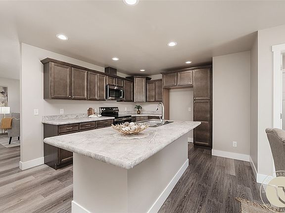 New home! Enter this beauty through the covered front porch. Large inviting living room with plenty of natural light. Open living kitchen and dining with sliding door to the side patio. Views of the ranch land to the northeast. The kitchen has plenty of counter space & stainless appliances. Primary suite & bath with 2 sinks, standing shower, window, and spacious closet. 2 more bedrooms & additional full bath on the main level. Hall storage, laundry room with cupboards and closet and more! Spacious lower level with room for all desires. Inquire about optional finishes. Corner lot. 2 car garage. A must see! Complete!