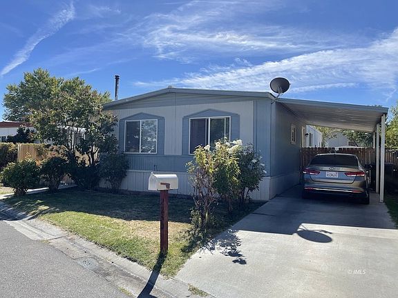 This spacious and updated mobile home is what you have been looking for! This home has 3 bedrooms, 2 bathrooms, a spacious and bright living room and updated kitchen. Home also features a large primary bedroom and bathroom with walk in closet, pellet stove, and mature fruit trees in the backyard! Home is in mobile home park and is subject to space rental fee.