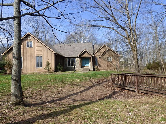Create you own country estate on five beautiful acres. This wonderful home on a wooded lot is just a short distance from the Gene Snyder, Shelbyville Road and Pewee Valley. The floor plan centers around a large, tray-ceiling Living Room/Family room. Built in bookcases on either side of a large fireplace create a focal point. From this room one has access to the deck on the rear of the house, the kitchen and bedrooms to the left and the Master Suite to the right. Every window in the house offers a superb view of the surrounding acreage. The woodwork throughout the house is nicely finished in warm natural wood. The walkout lower level is a spacious unfinished space with a roughed in bath and a stubbed in fireplace. When finished it would almost double the livable space. Inside