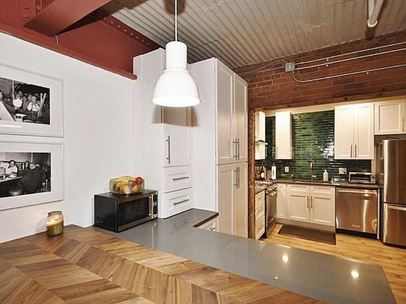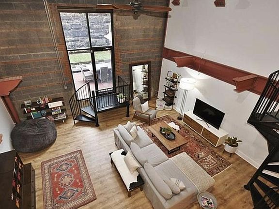 Amazing 2 story industrial LOFT w/ PRIVATE BACK YARD, GARAGE PARKING & ALLOWS PETS. This space in the former Duquesne Brewery perfectly balances the original warehouse features such as 15 foot ceilings, exposed brick, steel beams and upper level concrete floors with new living area wood floors and a white kitchen w/ Quartz counters & stainless steel appliances (including wine/beer fridge). Nice sized closet and laundry room on second level. Renter pays gas & electric. Non smoking.