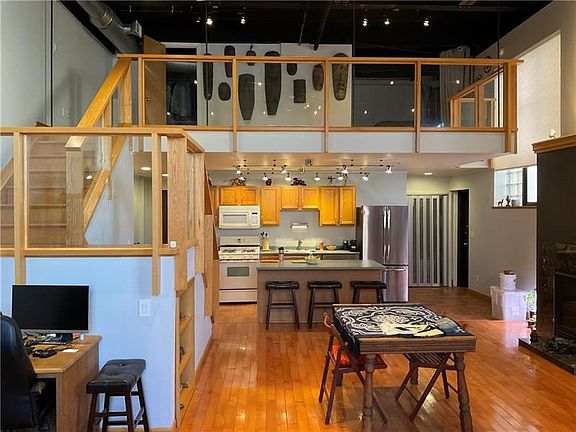 Desirable first-floor end unit in the much sought-after SOUTH SIDE LOFTS condominium building and former home of Duquesne Brewery! This is the only unit with private, street level, side entrance door. Unit offers soaring ceilings, steel beams, exposed ductwork, exposed brick and hardwood flooring. Glass/wood staircase leads to spacious lofted master bedroom suite overlooking first floor living space with monumental gas fireplace, open kitchen and dining area. Stackable washer/dryer and bath on first floor. This large first floor unit has sought after 1 car integral garage space with remote garage door opener. Most special is the roof top deck with spectacular views of Pittsburgh. Truly a sought after address with wonderful residents and easy access to all Pittsburgh has to offer.
