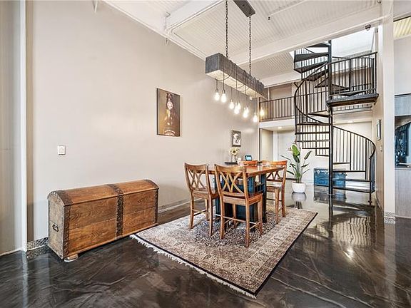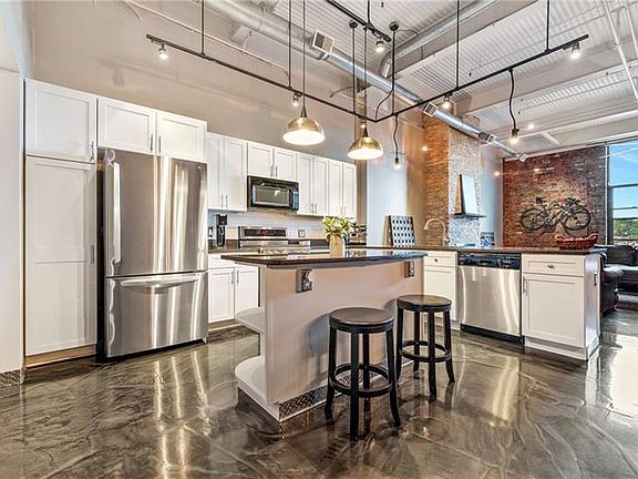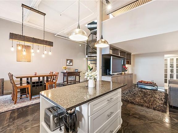 LUXURY, URBAN CONDO with spectacular City views in the historic South Side Lofts! This multi-level, open-concept unit is dressed in Industrial-Modern design featuring exposed brick, steel beams, & ductwork. Lofty ceilings & oversized windows. The concrete floor is uniquely treated w/ a marbleized, epoxy coating & finished w/ diamond tread baseboard - STUNNING! The kitchen is complete w/ newer SS appliances, quartz counters, crisp, white cabinets, & an island illuminated by SS dome pendant lights. A stacked stone, vent-less fireplace spans floor-to-ceiling & anchors the living space. The dining area features a light fixture fashioned as a RR tie wrapped w/ Edison lights. A black spiral staircase leads to the mid-loft & owners' suite. Both bathrooms were completely redesigned & renovated w/ premium finishes. The expansive owner's suite walks out to a private deck w/ views spanning from Oakland to Downtown. This location proximate to amenities that make city living so appealing!