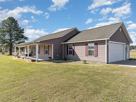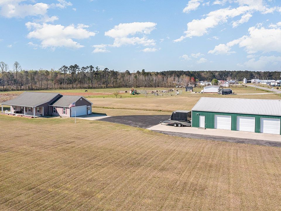 Welcome to your private oasis nestled in a serene country setting on 3.92 acres of land. This charming home offers a tranquil escape yet is only a 1/2 hour drive from North Myrtle Beach, making it the perfect blend of rural tranquility and coastal convenience. As you step inside, you'll be greeted by the spacious main living area featuring vaulted ceilings, creating an open and airy atmosphere. Ceiling fans adorn every room, ensuring year-round comfort and ventilation.The dining room exudes elegance with chair rail and bead board accents, perfect for hosting intimate gatherings or formal dinners.With a split floor plan, privacy is paramount, making it ideal for families or hosting guests. The guest bath boasts a tile surround and sliding doors, adding a touch of sophistication to the space.Retreat to the luxurious master bedroom, complete with tray ceilings and a walk-in closet, providing ample storage for your wardrobe and personal belongings.The heart of the home, the kitchen, has been recently upgraded with new appliances, including a stove/oven/air fryer combo and a high-end LG refrigerator, making meal preparation a breeze.The attached garage boasts immaculate epoxy flooring and ample space for storage or tinkering with your vehicles. But that's not all – the property also includes a fully appointed 6-car garage with three separate bays, complete with insulation, ample space for storage and equipment, perfect for car enthusiasts or hobbyists looking to work on and restore vehicles. Don't miss out on the opportunity to call this stunning property home. Schedule a viewing today and experience country living at its finest.