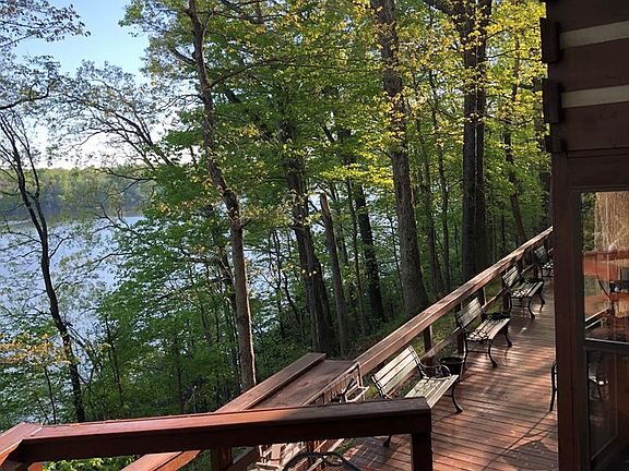 Amazing Lake Front Home with year around view! Custom built log on approx. 7 acres, 2900 sq. ft. of living, stone fireplace overlooking lake. Kitchen with 12' island bar. Family room with small kitchen and full bath in basement walks out to heated 12x25 sun porch onto a 108 ft long back deck perfect for entertaining, complete with patio furniture. Tons of storage! 24x32 barn, huge loft for additional sleeping, 12x16 det storage. Ext. & Interior walls are rough sawed cedar with perma chinking! Immaculate & move in ready! Extra slips available on close dock with Corp Approval!
