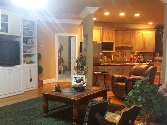 Great views & very private, secure location. This is a custom home built by Kim L. Woods construction.Has TWO kitchens... like having 2 houses in one. The upstairs has granite countertops, custom cabinets, & columns in the living room.Very large rooms/ open floorplan throughout. Lots of hardwood & ceramic tile.