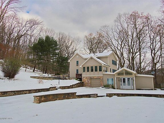 60 MILES FROM NYC!! ATTENTION SKI LOVERS! CLOSE TO POCONO SKI RESORTS - - 12 +acres including Delaware River access. Move-in ready Circa 1830's farmhouse with all the modern amenities, extended living quarters and weathered 4 story barn offering many possibilities. Home has original hand hewn beams & wide plank floors in LR plus a walk-in fireplace w/wood stove. Gorgeous DR with spectacular fireplace, a wall of windows overlooking the roof top garden opening up to custom kitchen w/Viking 6 burner stove & granite counters + a 4-season room/breakfast nook. The second level has a lovely master w/en suite + 2 walk-in closets..2 more ample sized BRs & 1/2 bath. On lower level a family/rec room + 1/2 bath opening up to an in-law suite complete with great room, skylights, two bedrooms and more