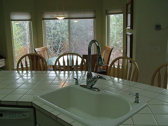 Open and bright, 18 foot vaults in family room, lots of window, three car garage, vaulted ceilings in three bedrooms, large bedrooms, stainless steel appliances including Viking double oven. Large island in kitchen. Has 5 piece master bath with custom travertine tile. Walkout basement is partially finished with large fifth bedroom.