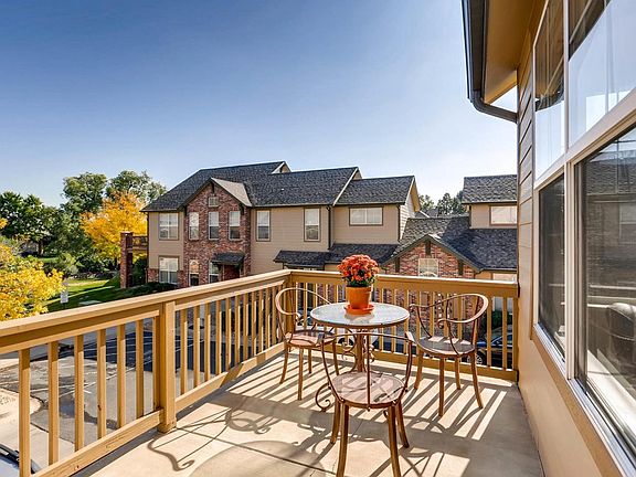 Classic design, red brick exterior and beautiful landscaping showcase this immaculate, one owner private end-unit. Townhouse-style condo is adjacent to nearby 9th fairway and greenbelt at Heather Ridge Golf Course. You will enjoy a private location with no one above or below this. Over-sized attached 1 car garage with extra storage. Small front yard area is perfect for the pet owner. Security style front door, small foyer, stairs lead to a ranch-style floor plan with living, dining, & kitchen area. Separate washer/dryer area opens to master bedroom, 4 piece bath, and walk-in closet. Second bedroom has spacious built-in shelving. Home is filled with natural lighting, cathedral ceilings, honeycomb cellular style blinds and plantation shutters. Refrigerator, washer/dryer, and patio furniture are all included in this perfect price point! This unit is ideal for a buyer looking for close proximity to light rail, pet & smoke-free and low maintenance ownership.