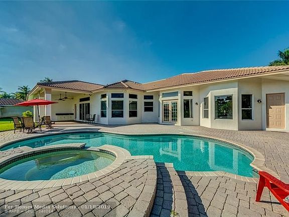 West Davie Luxury! This entertainer's dream features 6 bedrooms plus den/office, 4 full baths, 1 half bath and 3 car garage. The triple split floorplan also includes a 2nd family room or children's playroom. Situated in a boutique gated neighborhood, this home has a prime cul de sac location with a large circular driveway. The private builder's acre lot boasts a pool, water views, and outdoor entertaining space. Chef's kitchen includes walk-in pantry, center island, 2 dishwashers and 2 sinks along with custom cabinetry and granite countertops. With over 5000 sq feet, this home truly exhibits the best floorplan and has architectural details throughout. A rated schools! Don't miss this gem!